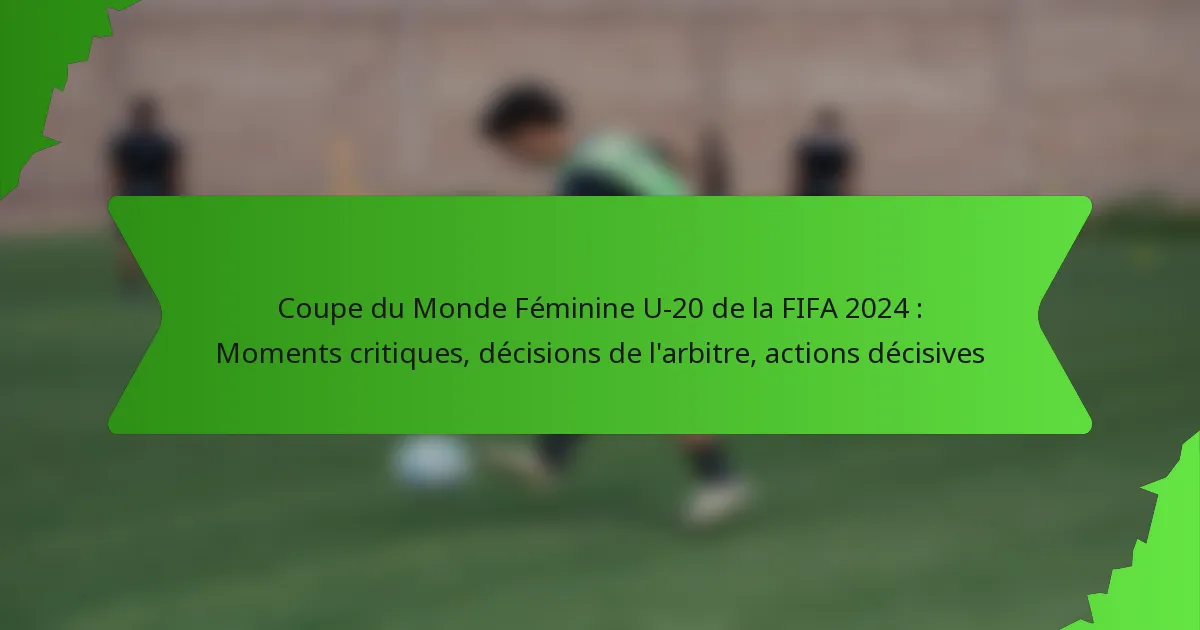 La Coupe du Monde Féminine U-20 de la FIFA 2024 a présenté plusieurs moments décisifs qui ont significativement influencé les résultats des matchs. Des jeux clés, des décisions arbitrales et des changements tactiques ont façonné le tournoi, mettant en avant l’importance de la stratégie et de l’exécution des joueurs dans des matchs à enjeux élevés.