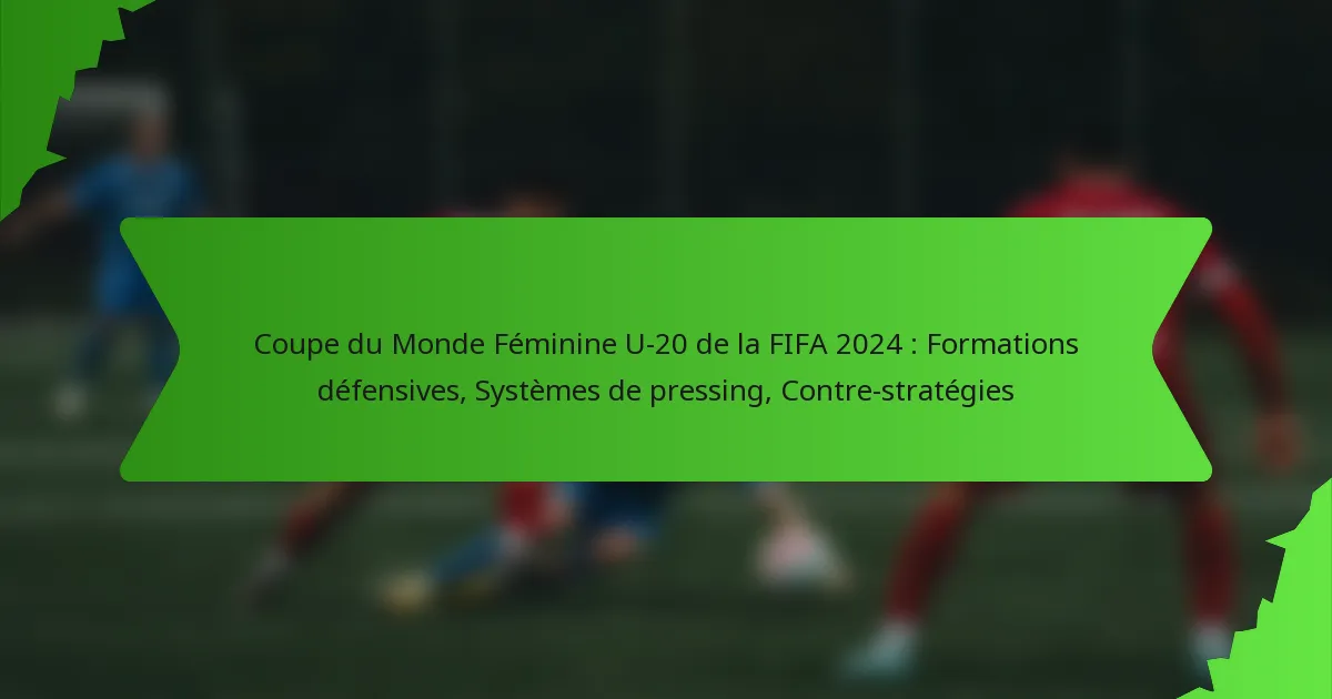 Les systèmes de pressing dans la Coupe du Monde Féminine U-20 de la FIFA 2024 sont des cadres tactiques conçus pour récupérer la possession du ballon en appliquant une pression sur l’équipe adverse. Ces systèmes varient en intensité et en structure, influençant la manière dont les équipes défendent et contre-attaquent pendant les matchs.