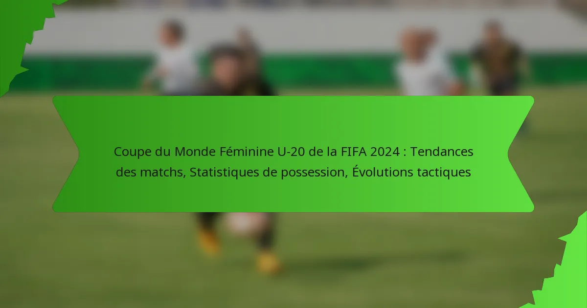 La Coupe du Monde Féminine U-20 de la FIFA 2024 a révélé des tendances de match intrigantes, notamment en ce qui concerne les formations tactiques et les statistiques de possession. Les équipes ont démontré une capacité d’adaptation dans leurs stratégies, répondant à la fois aux forces des adversaires et aux dynamiques de jeu, ce qui a conduit à un jeu varié et passionnant. La possession joue un rôle crucial dans la détermination des résultats des matchs, car les équipes ayant des taux de possession plus élevés dictent souvent le rythme et créent plus d’opportunités de marquer.