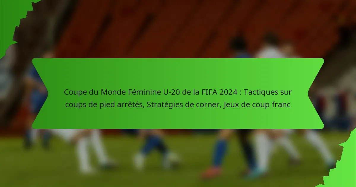 Les équipes se préparent aux coups de pied arrêtés lors de la Coupe du Monde Féminine U-20 de la FIFA 2024 grâce à une planification minutieuse, un entraînement et une analyse. Des stratégies de coups de pied arrêtés efficaces peuvent influencer de manière significative les résultats des matchs, rendant la préparation essentielle pour le succès.