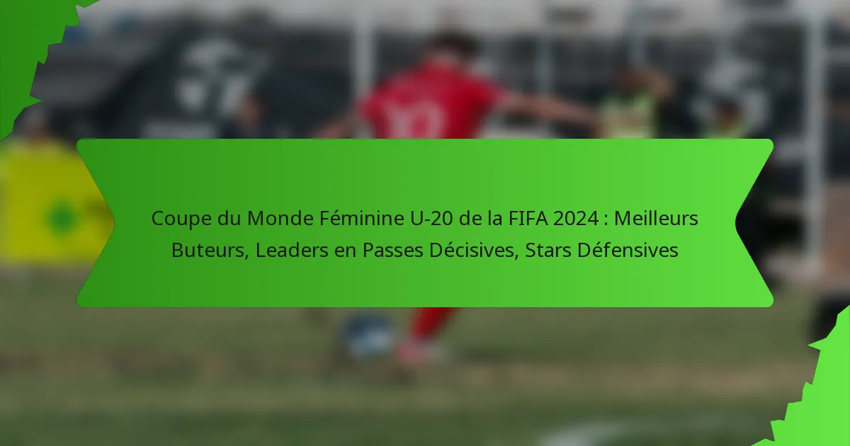 Les performances des joueuses dans la Coupe du Monde Féminine U-20 de la FIFA 2024 peuvent être évaluées à travers des indicateurs clés tels que les buts marqués, les passes décisives fournies et les contributions défensives. L’analyse de ces statistiques révèle des joueuses remarquables et des tendances qui mettent en lumière leur impact sur le tournoi.