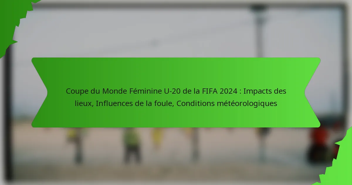 La sélection des lieux influence considérablement la Coupe du Monde Féminine U-20 de la FIFA 2024 en affectant l’accessibilité, l’engagement des foules et l’atmosphère générale. Choisir les bons emplacements peut améliorer l’expérience des équipes et des fans, tout en promouvant le football féminin sur la scène mondiale.
