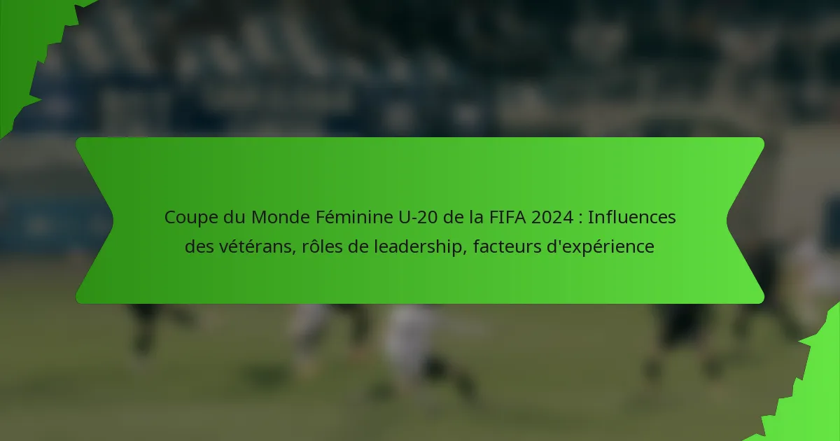 Coupe du Monde Féminine U-20 de la FIFA 2024 : Influences des vétérans, rôles de leadership, facteurs d’expérience